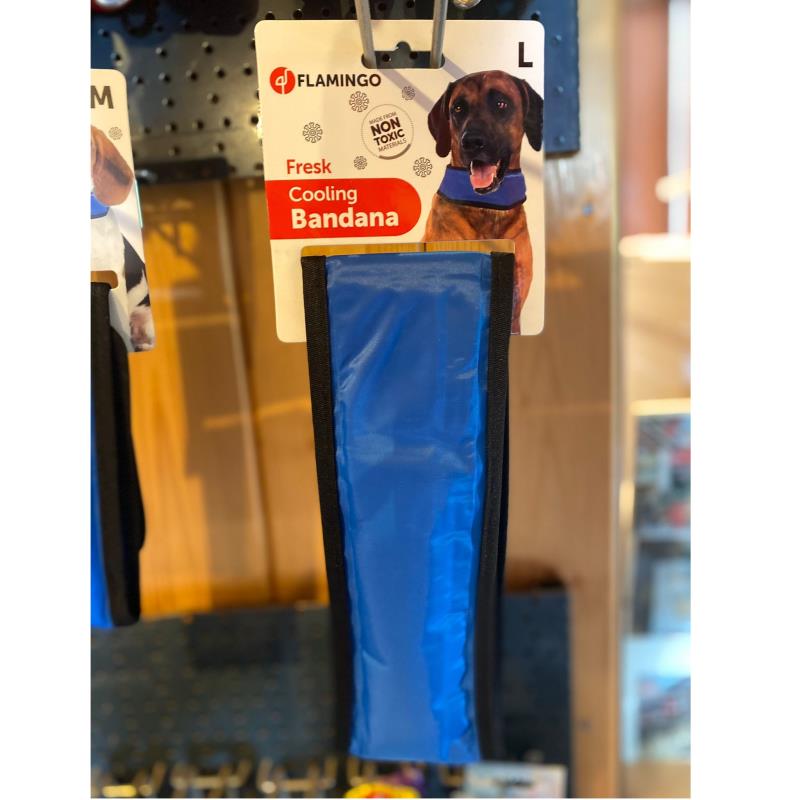 Materiaal: polyester met vulling: gel en schuim Verstelbaar met klittenband Makkelijk schoon te maken met een vochtige doek Leg de koelbandana in de koelkast voor extra verfrissing Met bies De verkoelende gel is ongevaarlijk voor je huisdier
