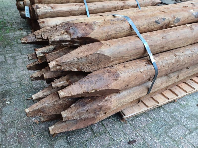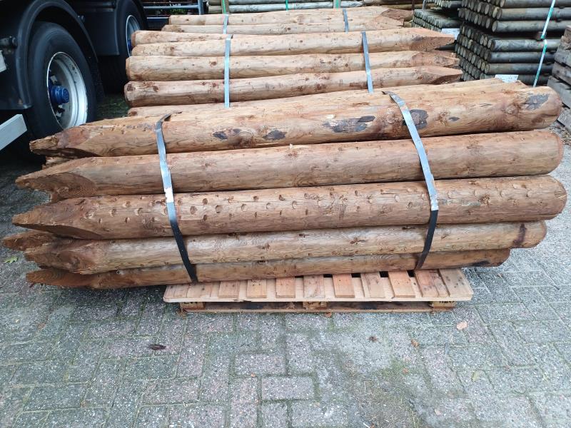 Vuren geschild 200cm kop Ø16-18cm bruin geïmpregneerd, gepunt en gekruind