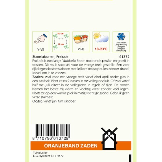 rijkdragende stamslaboon met lekkere malse peulen zonder draad.